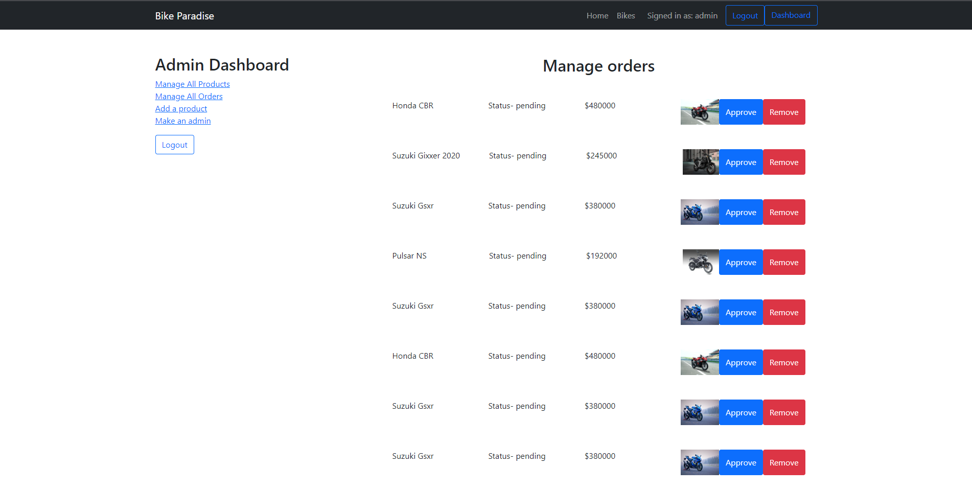 Bike Paradise -- Server-Side Note: Email: admin@admin.com password: 123456 (Use This email & password for login as an admin)